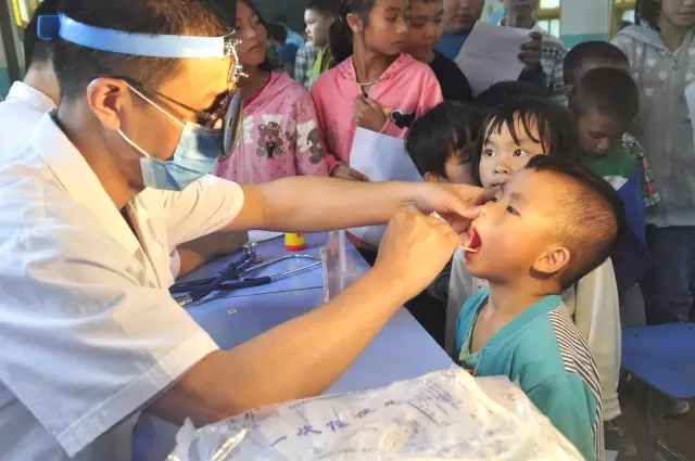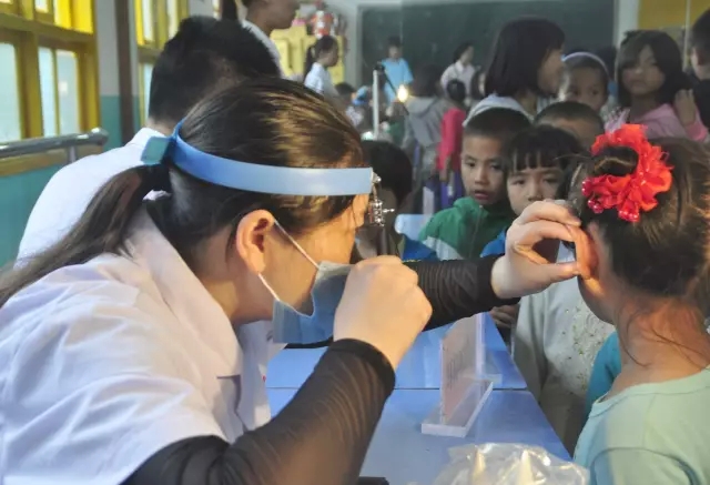 贵州省第二人民医院蹇华主任为孩子进行耳鼻喉检查