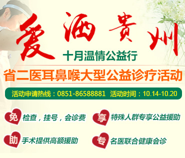 爱洒贵州,十月温情公益行。贵州省第二人民医院始终把“一切为了患者的健康”作为自己的责任和使命,医护人员用心服务,不断深入开展活动,以精湛的医术和优质的护理,让每位患者都能享受到一流的医疗服务。贵州省第二人民医院也将一如既往发扬爱心助民的优良传统,把无私的爱奉献给广大耳鼻喉患者。