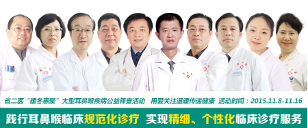 寒冬渐近,耳鼻喉疾病逐步进入高发期,为进一步贯彻落实卫生部关于医疗制度改革的精神,进一步提升广大耳鼻喉患者的健康意识,树立科学、规范的耳鼻喉疾病诊疗体系,提高医疗服务的透明度;贵州省第二人民医院主办的"2015“暖冬惠聚”大型耳鼻喉公益筛查活动正式启动。(活动时间:2015.11.8—2015.11.16)
