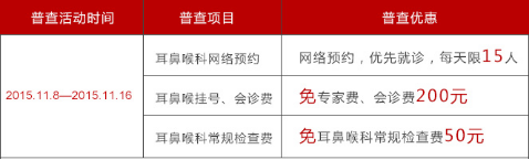 贵州省第二人民医院“暖冬惠聚”大型耳鼻喉疾病公益筛查活动特为耳鼻喉患者开通网络提前预约通道。同时,根据患者咨询,30分钟问诊,3个月跟踪服务,建立长期健康档案。为保证患者就医质量,网络预约每天限15人。