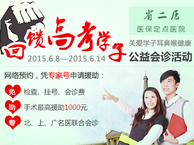 每一个孩子都是父母的掌上宝,父母在对于孩子无限期望的同时,更应该时刻关注孩子们的健康!贵州省第二人民医院为回馈广大莘莘学子,特于高考后推出“2015回馈高考学子,圆梦大学”耳鼻喉公益会诊活动,以便让更多的高考学子拥有健康,在梦寐以求的象牙塔里享受美好的大学时光。(活动时间:2015年6月8日—6月14日)