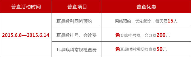 “回馈高考学子”公益会诊活动特为耳鼻喉患者开通网络提前预约通道。同时,根据患者咨询,30分钟问诊,3个月跟踪服务,建立长期健康档案。为保证患者就医质量,网络预约每天限15人。