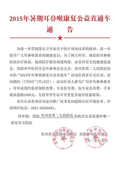 贵州省第二人民医院·2015暑期耳鼻喉康复公益直通车 关爱耳鼻喉健康