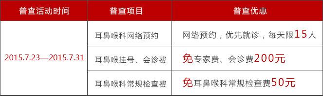 活动公示:本次公益直通车时间定于(2015年7月23日~7月31日),针对7-70岁的耳鼻喉患者,可通网络预约,申请援助。对重大疑难病症,将联合北上广权威医院耳鼻喉主任或学科带头人采取“三级会诊制度”。